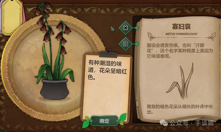 游戏的内涵涵盖了几十种植物。手谈纪特意找了几个,发现现实中一个都没有。因此,季可以推断,这些植物都是由开发人员自己编写的,它们不是常见的编写,因为植物的功能,气味和外观都是科学描述的,例如卷曲的叶子,圆形的叶子,蜡质,流线褶皱等。所有的植物也都有拉丁名,拉丁名也是精心设计的。