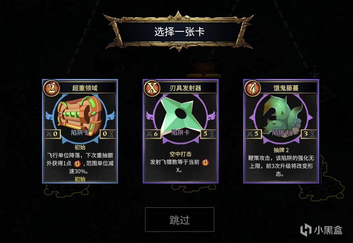 此外,本作的卡牌系统特别丰富多样,根据功能不同可细分为陷阱卡、技能卡和增强卡三大类。每种类型的卡牌都有其独特的功能,玩家可以根据不同的战略需求灵活组合以构建独特的防御风格。